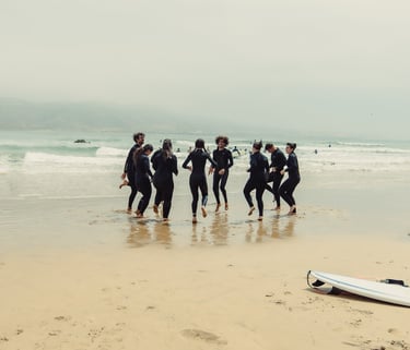 Dejate llevar por la magia de Taghazout, donde cada amanecer invita a una nueva aventura. Surfea en playas míticas como Anchor Point o Panoramas, conocidas por sus olas perfectas y su ambiente acogedor para todos los niveles. Recorre sus callejuelas llenas de color, saborea un té con vistas al Atlántico y conecta con una comunidad de viajeros que, como tú, buscan algo más que un destino: "buscan una experiencia."