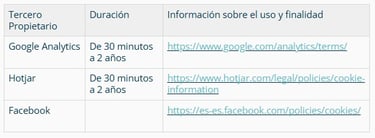 Información sobre las Cookies de Terceros: