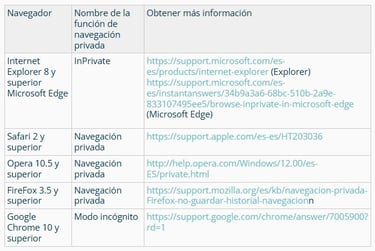 Uso de navegadores con modo de navegación privada